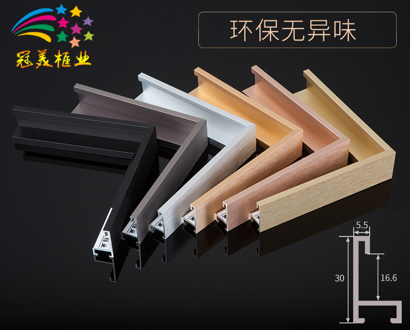 產(chǎn)品簡介:GM-902鋁合金框,面寬5.5mm,厚度30mm,是鋁合金畫框中熱賣款式之一,氧化拉絲工藝,富有觸感,長期不褪色,是現(xiàn)在家居裝飾畫的不二選擇...