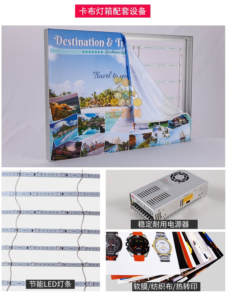 產(chǎn)品簡介:軟膜卡布燈箱,一款以無框展示廣告內(nèi)容的廣告燈箱,換畫方便,用UV軟膜或紡織布類作為畫面,將畫面卡入鋁材中即可展示,高亮*簡單*大方*彰顯品牌實(shí)力。...