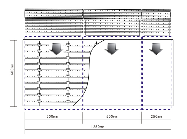 1300/500=2……300(那就是用2排500mm,再用一排250mm的燈來布局)